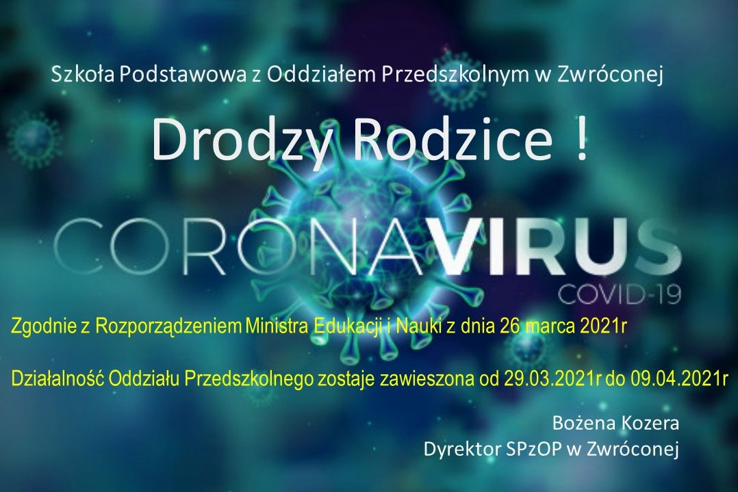 Uwaga Przedszkole zamknięte do 9 kwietnia 2021r