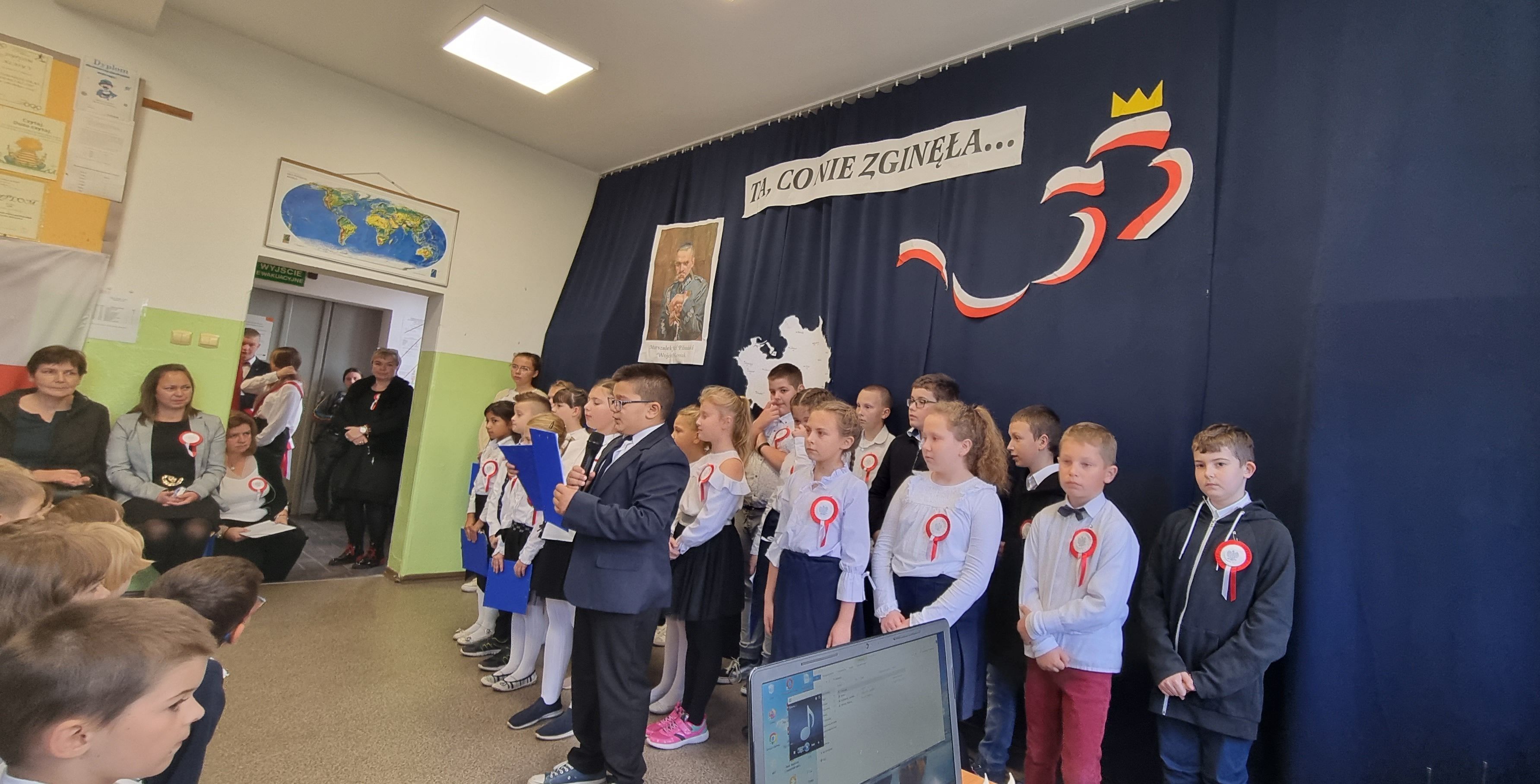 Święto Odzyskania Niepodległości, uczniowie uczcili dwukrotnie - 10 listopada w naszej szkole oraz 11 listopada w Kościele pw. św. Piotra i Pawła w Zwróconej. Tegoroczny apel został przygotowany przez młodszych uczniów (klasy 1-4). Prezentowane utwory słowno-muzyczne skierowane do zgromadzonej publiczności przybliżały historyczny rys dążeń Polaków do wolności.