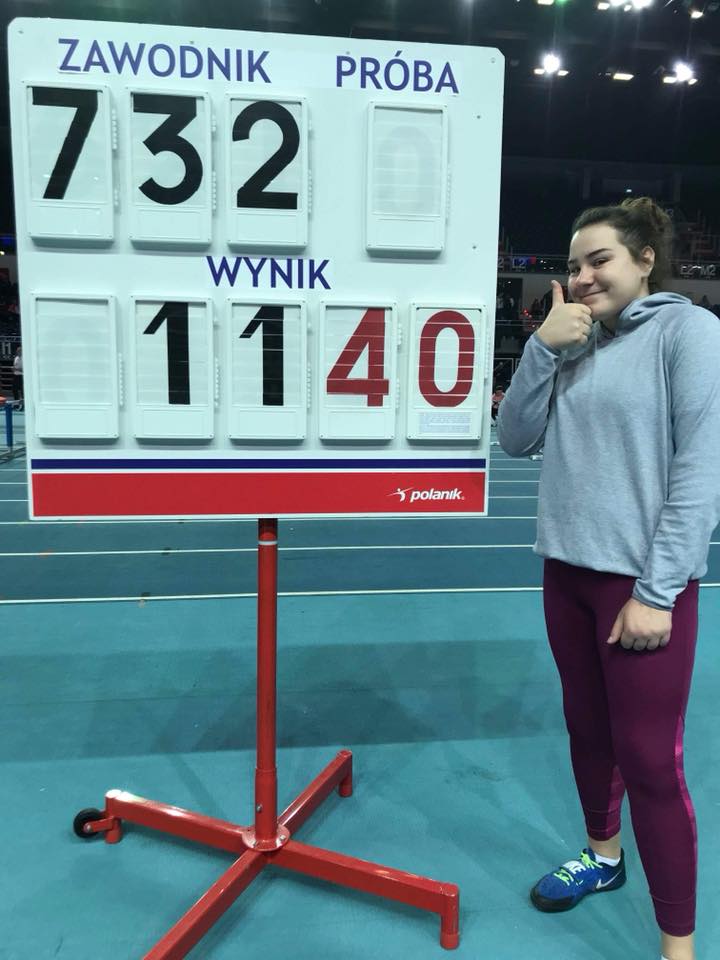 "Podopieczna Aleksandry Walczak Martyna Dobrowolska bardzo dobrze rozpoczęła Halowe Mistrzostwa Województwa zdobywając zloty medal z nowym rekordem życiowym w pchnięciu kula 11,40 Gratulacje !!!"